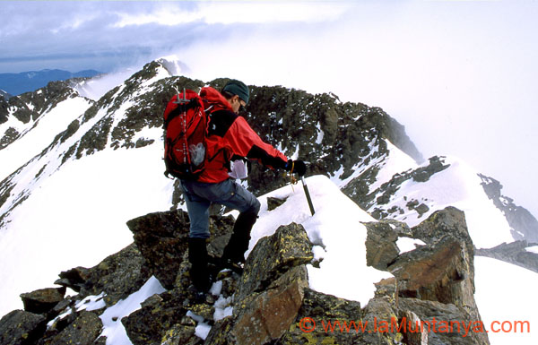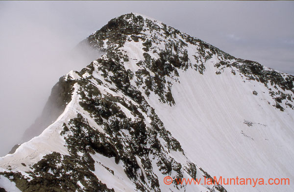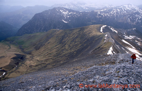 per després seguir la cresta, passar per un avant-cim, i arribar finalment
