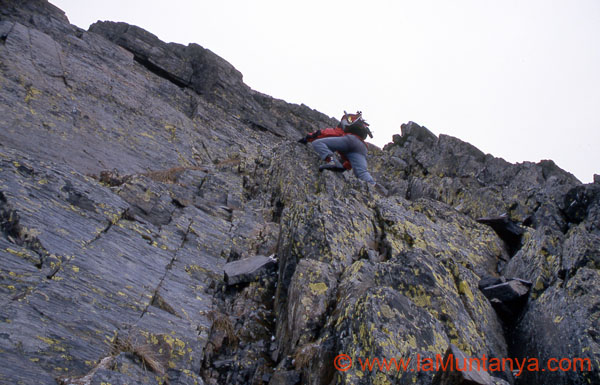 Enfilem directament la cresta que puja molt fort amb dos passos de 2º grau