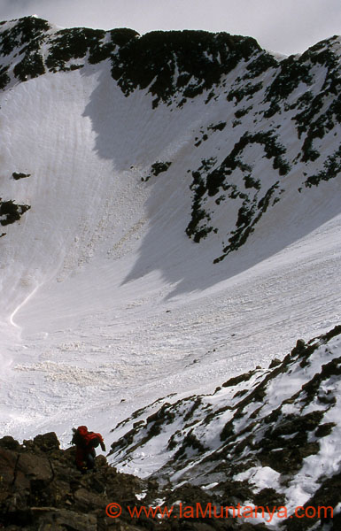 una canal per on baixem uns metres més, fins poder fer un flanqueig llarg