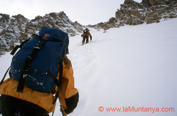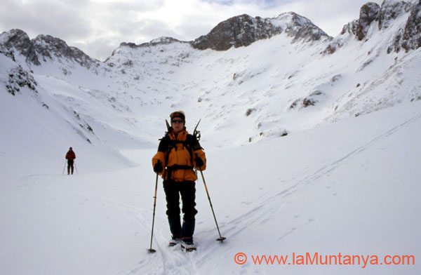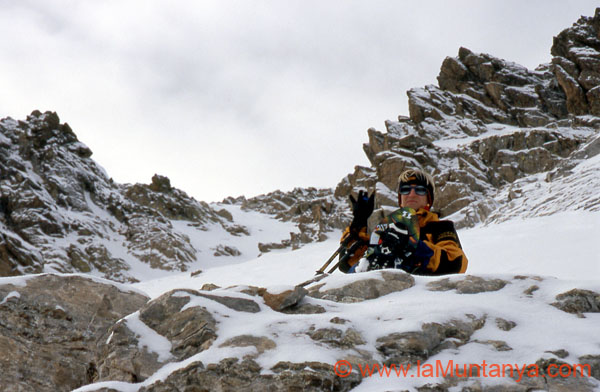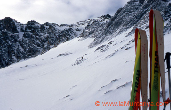 entre aquesta i una canal de l'esquerra per la que baixarem després.
