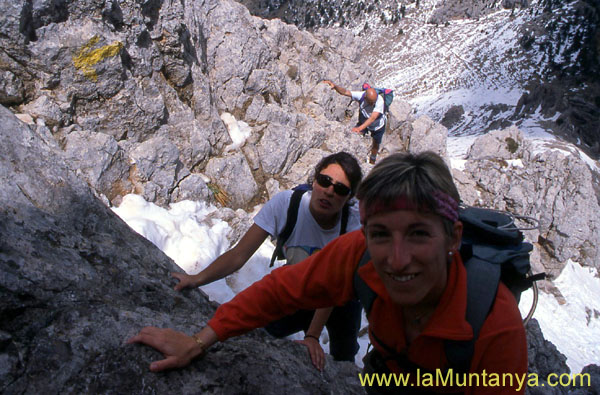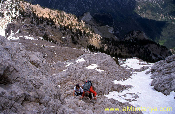 a grimpar, primer pel vessant N, i després pel S fins arribar al