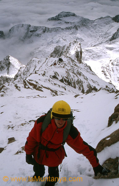 dia anterior. Arribem a la collada del Diente (3010m) i prosseguim amunt