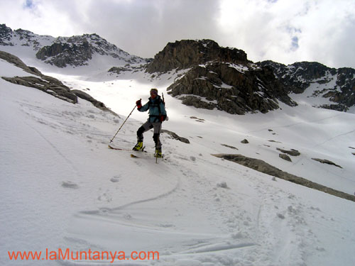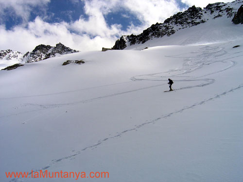 de la Maladeta (Pirineus Aragonesos) Notes: Sortida d’esquí de muntanya als Pirineus Aragonesos, a un pic recentment introduït al Pirineisme, i que s’acaba d’incorporar a la cartografia més destacada (Angulo i Alpina). La Torre Cordier és un curiós mirador situat a la part superior de la glacera de la Maladeta entre els pics Cordier i el Dién de la Maladeta. Vàrem gaudir esquiant els 800m de descens, per amples pales amb neu de qualitat excel·lent. ---oooOOOooo--- > Fotos: