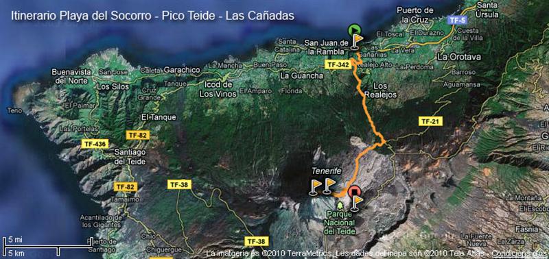 Ascensió al pic Teide (3718 m) des de la platja d'El Socorro (0 m) al nord de l'illa de Tenerife, a prop del Puerto de la Cruz, i descens fins Las Cañadas (2375 m). Ascensió directa de vora 4000 m coneguda com Teide 0.4.